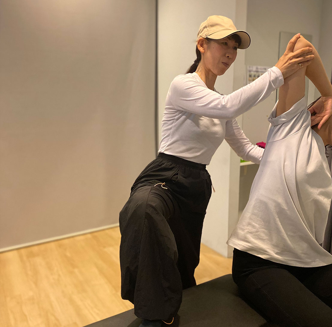 そこから身体について深く学び、民間トレーナー資格やマットピラティス資格を取得しました。2016年よりパーソナルトレーナーとして活動を開始。お客様一人ひとりの理想や要望に寄り添いながら、楽しく、ときには厳しく指導を続けています。